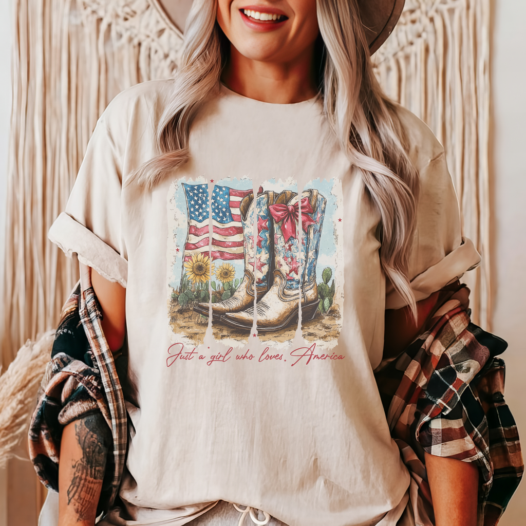 Just a Girl Who Loves America Western Graphic T-Shirt