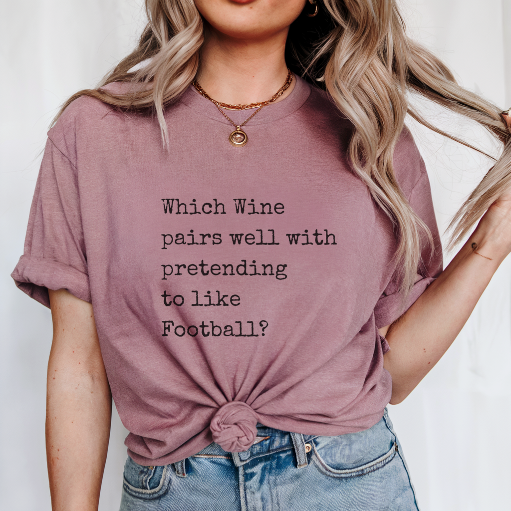 Wine Pairs Well With Pretending to like Football Funny Graphic T-Shirt