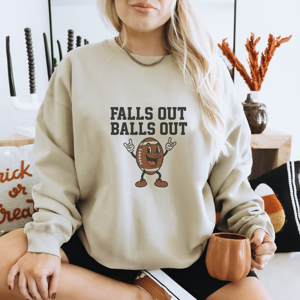 Falls Out Balls Out Football Graphic Crewneck Sweatshirt