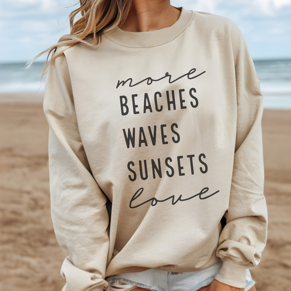 More Beaches, Waves, Sunset, Love Summer Women's Graphic Sweatshirt