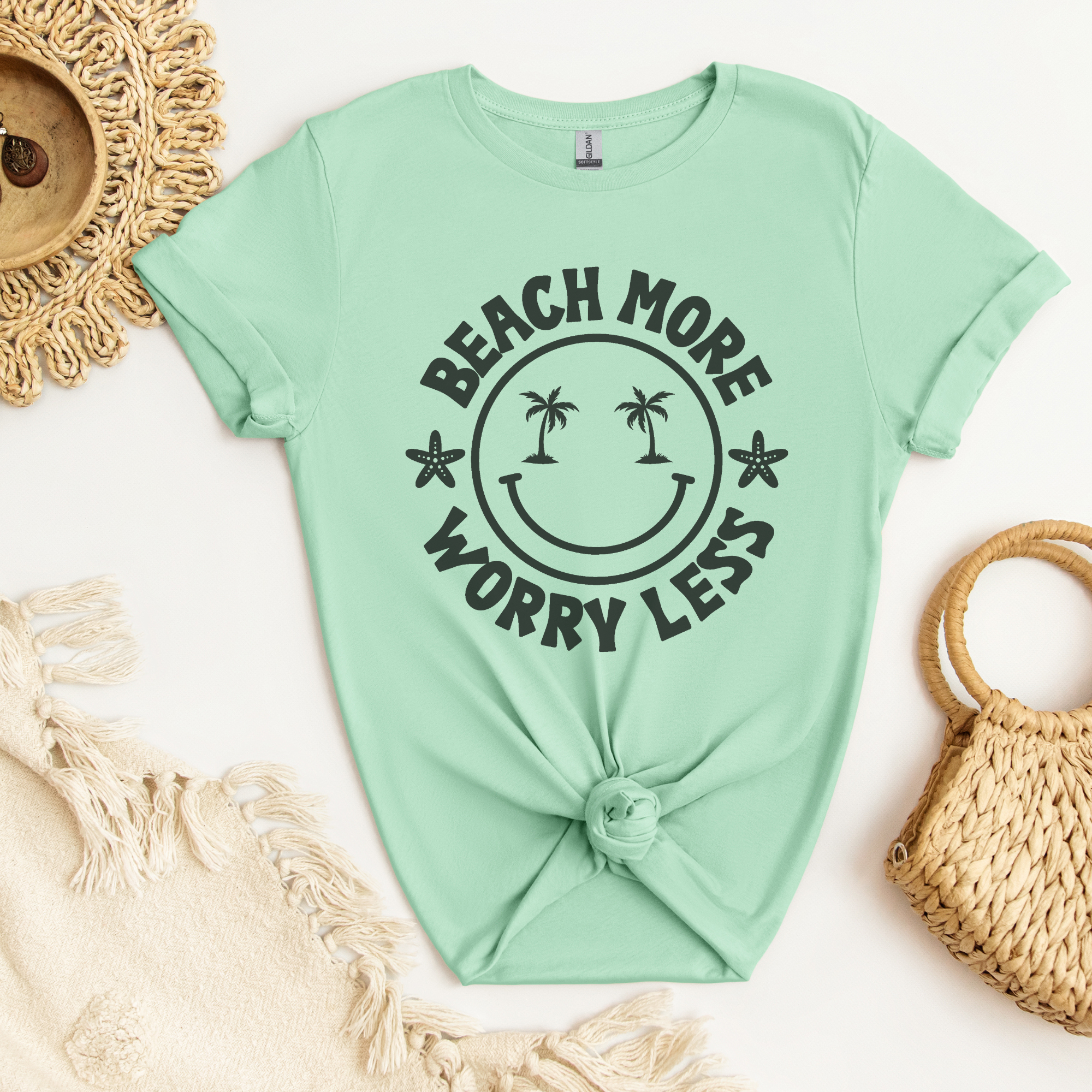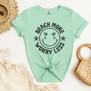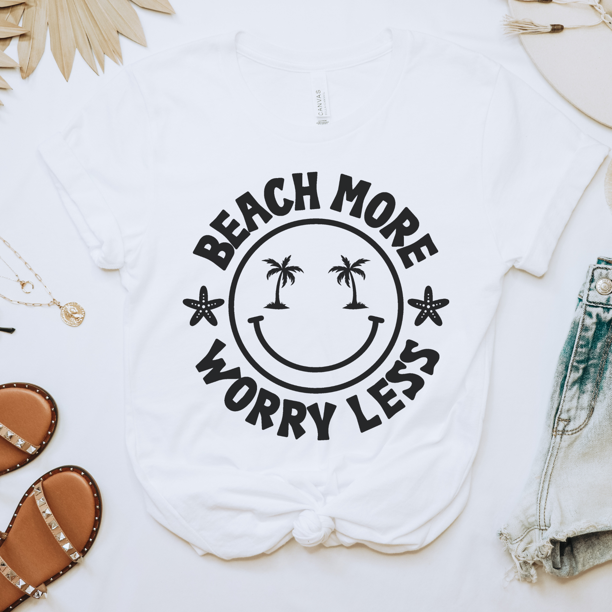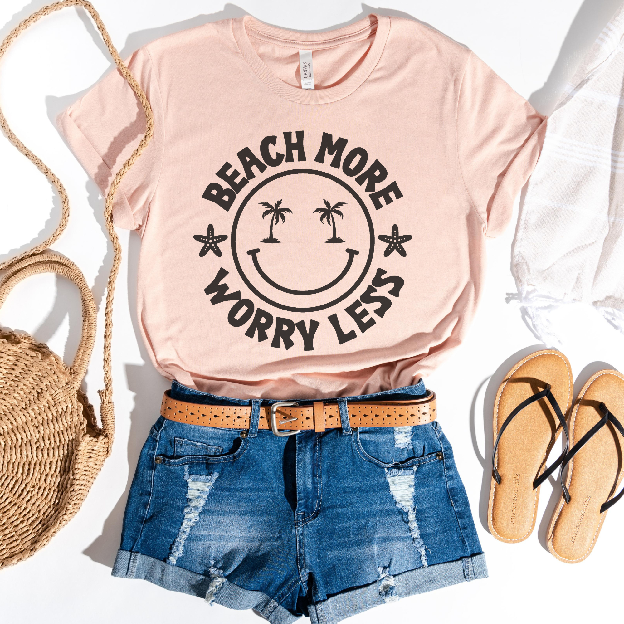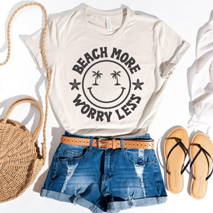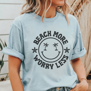 Bring a touch of summer vibes to your wardrobe with our Beach More Worry Less Summer Graphic Tee! Embrace the carefree spirit of the season and enjoy the beach with this comfortable and stylish tee. Perfect for those who want to add a touch of relaxation and fun to their everyday style.