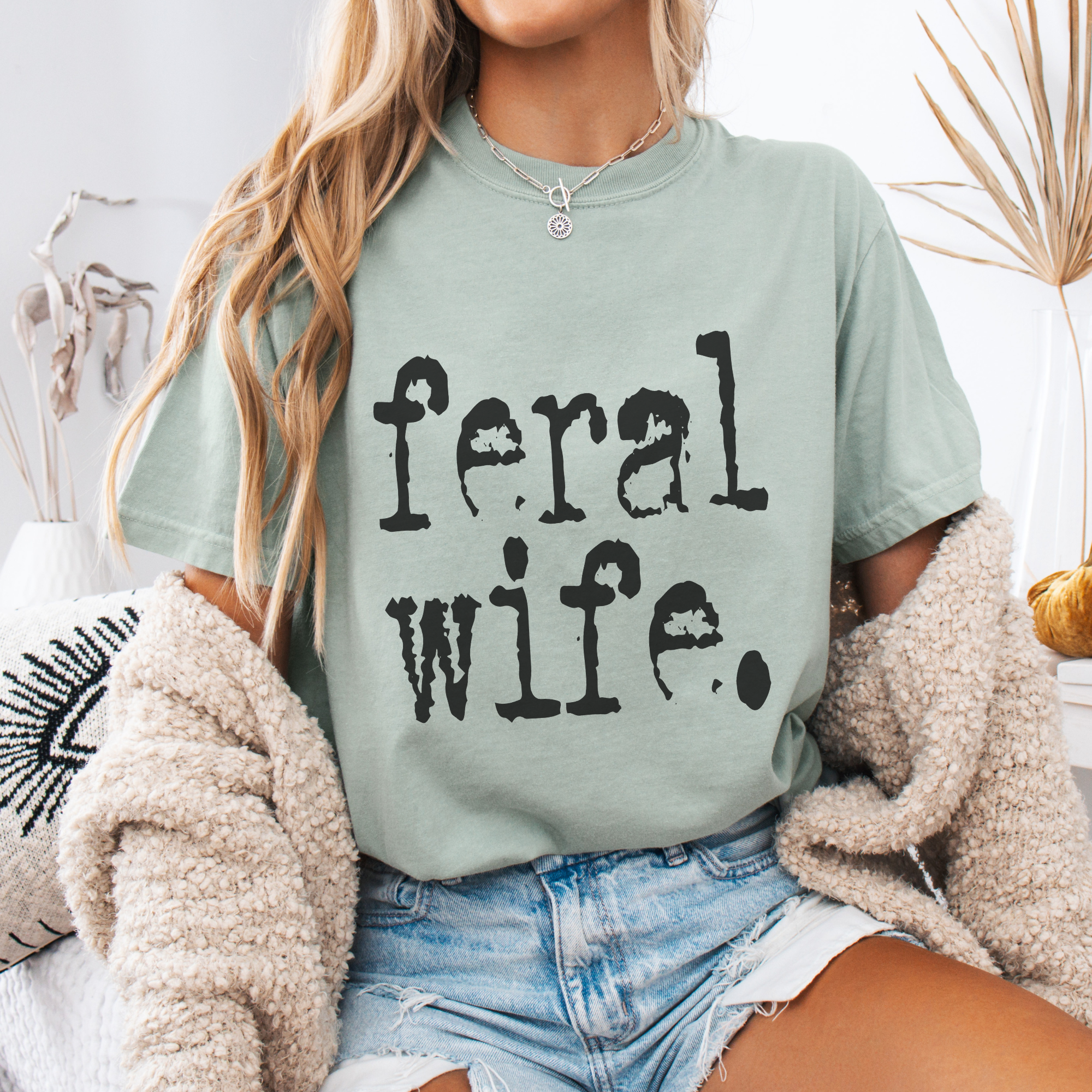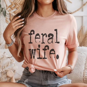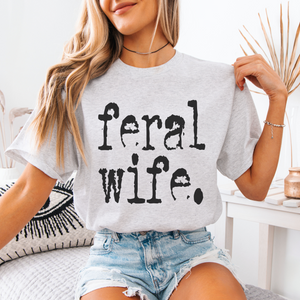 Show off your wild side with the Feral Wife Funny Women's Graphic T-Shirt. Designed for women who embrace their fierce independence and sense of humor, this tee combines comfort with a bold statement. Perfect for casual outings or relaxed weekends, it’s a fun way to express your personality and spark conversations wherever you go.