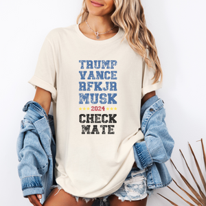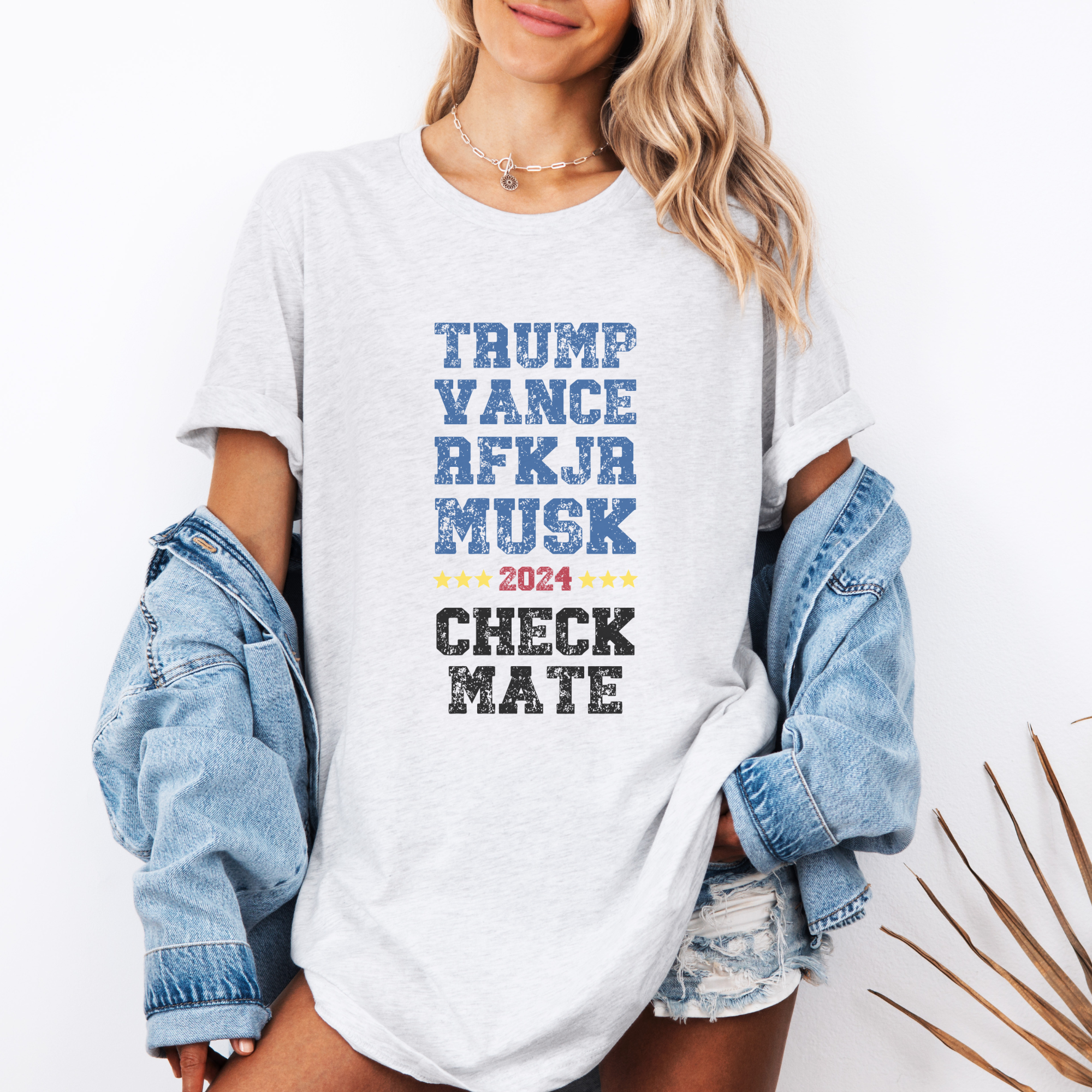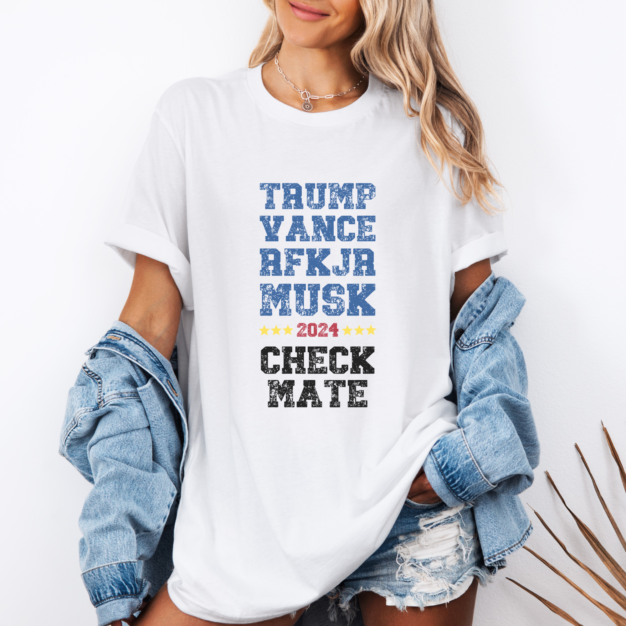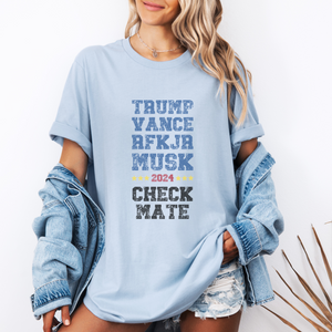Show off your patriotic spirit and love for chess with our Funny Trump Vance Check Mate T-Shirt! Featuring a bold graphic and comfortable fit, this shirt is perfect for any occasion. Make a statement while showing off your unique style!
