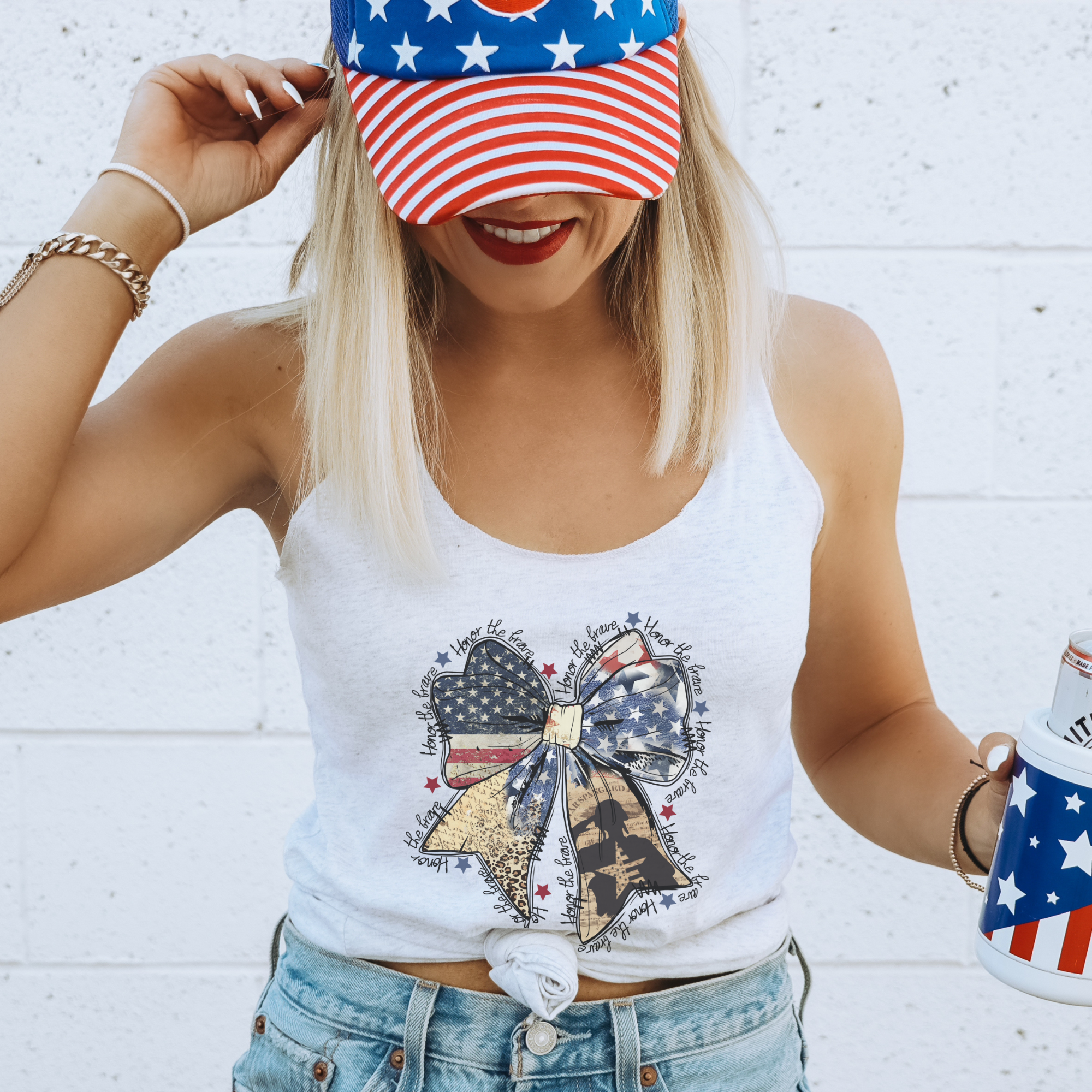 Show your patriotic spirit this 4th of July with our Honor the Brave racerback tank top! Featuring a bold graphic design, this tank top is perfect for celebrating our brave heroes and the freedom they fought for. Made with lightweight, breathable fabric, it's ideal for all-day wear.