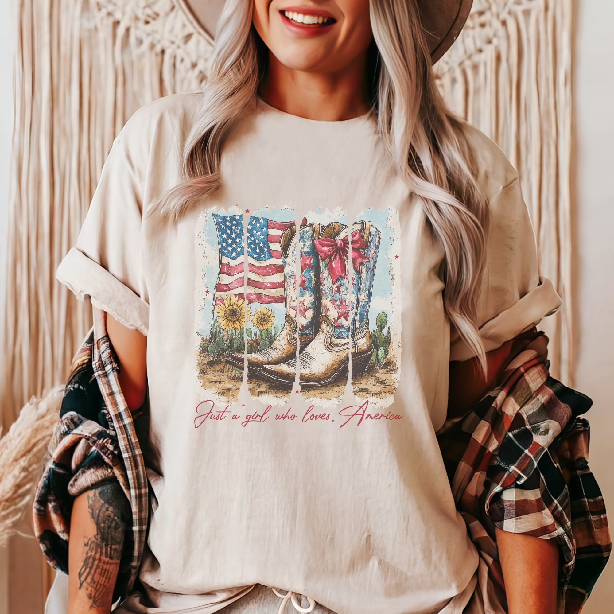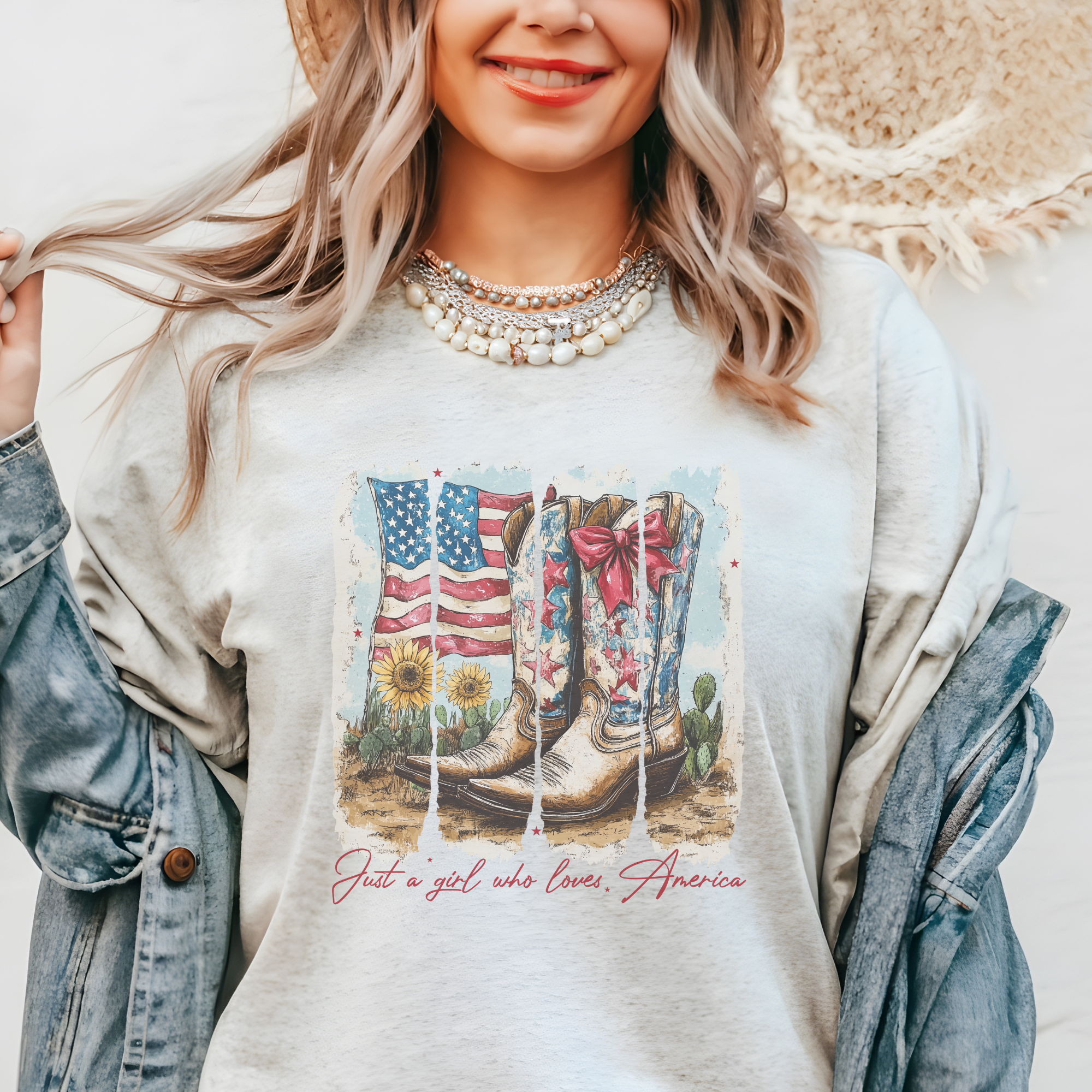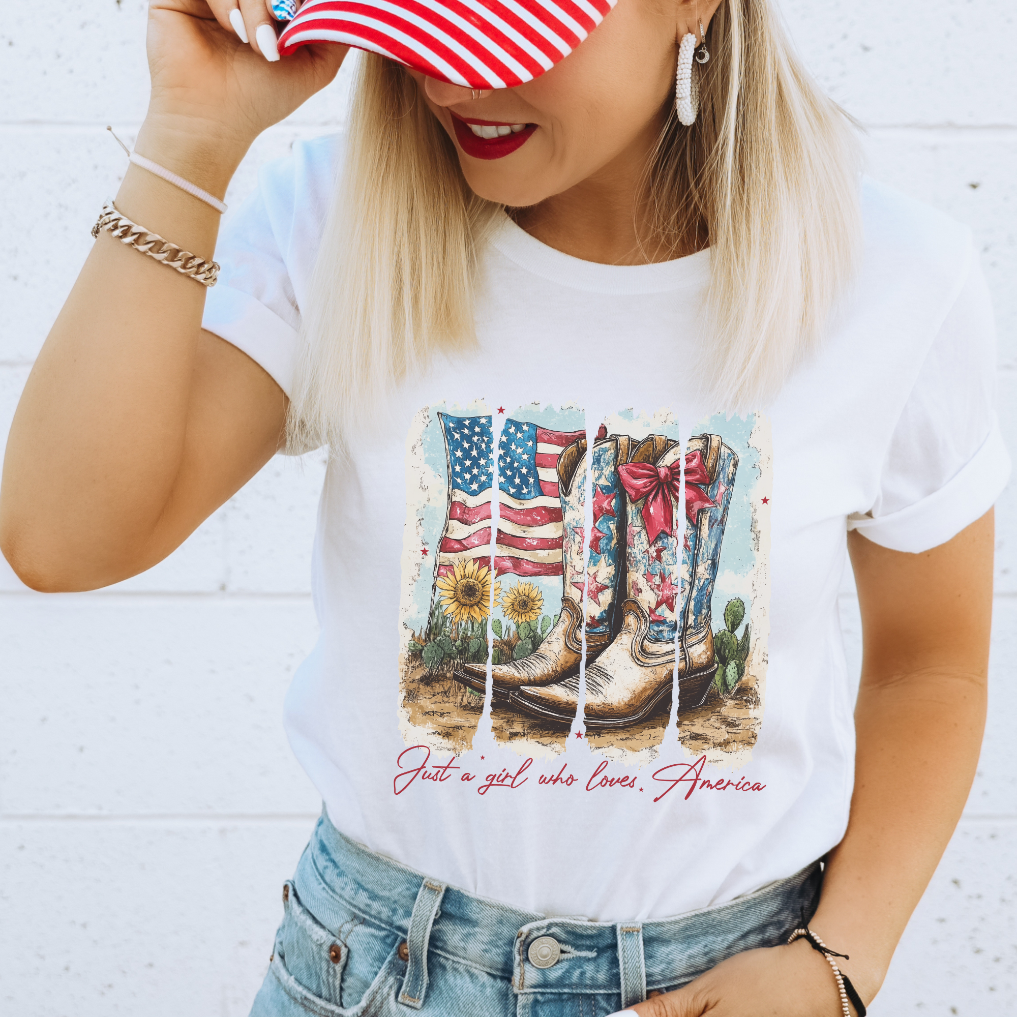 Celebrate your love for America with this inspiring Western 4th of July Graphic T-Shirt. Designed for the proud girl who loves her country, this t-shirt features a bold graphic that showcases your patriotism. Perfect for 4th of July celebrations or everyday wear, show off your American pride in style.