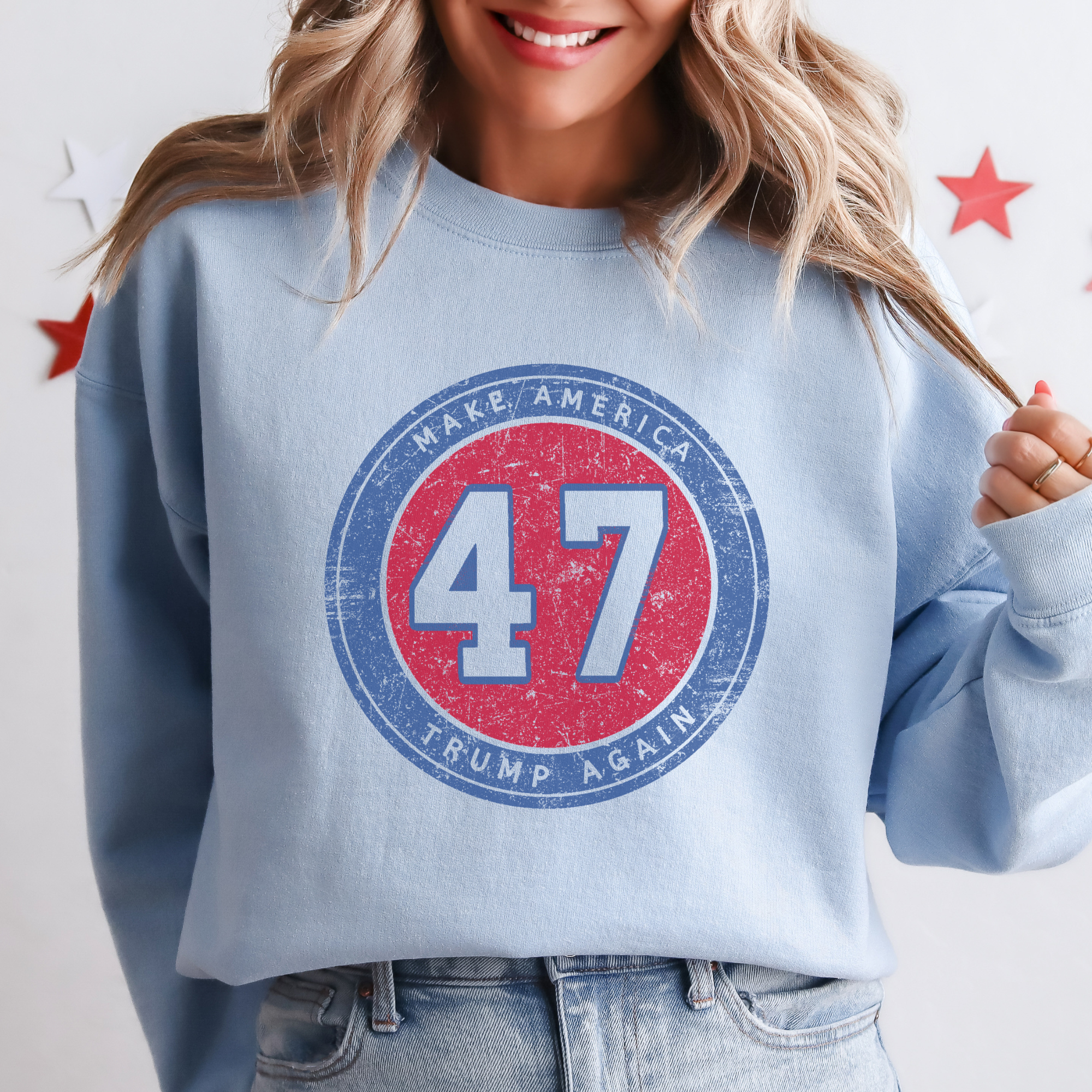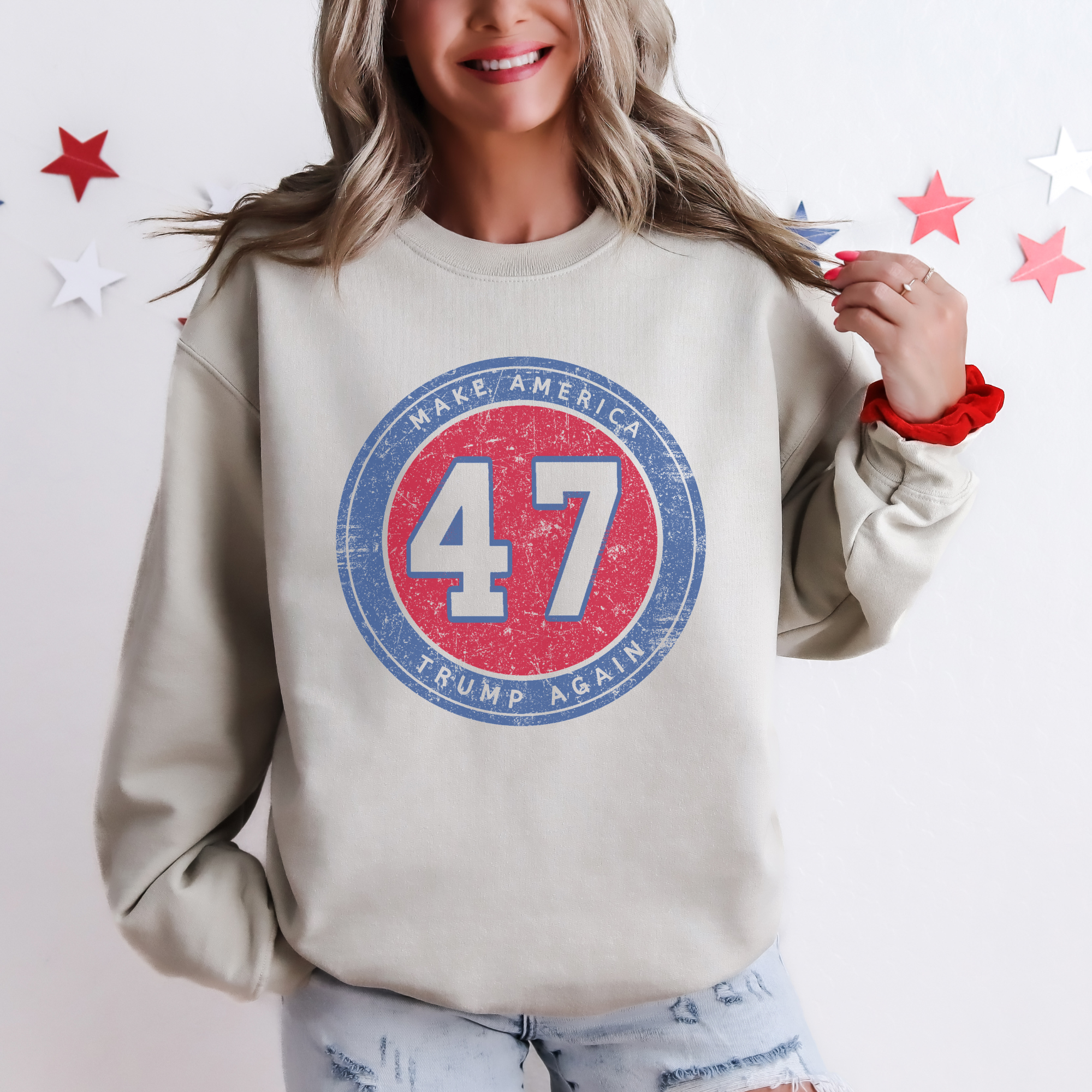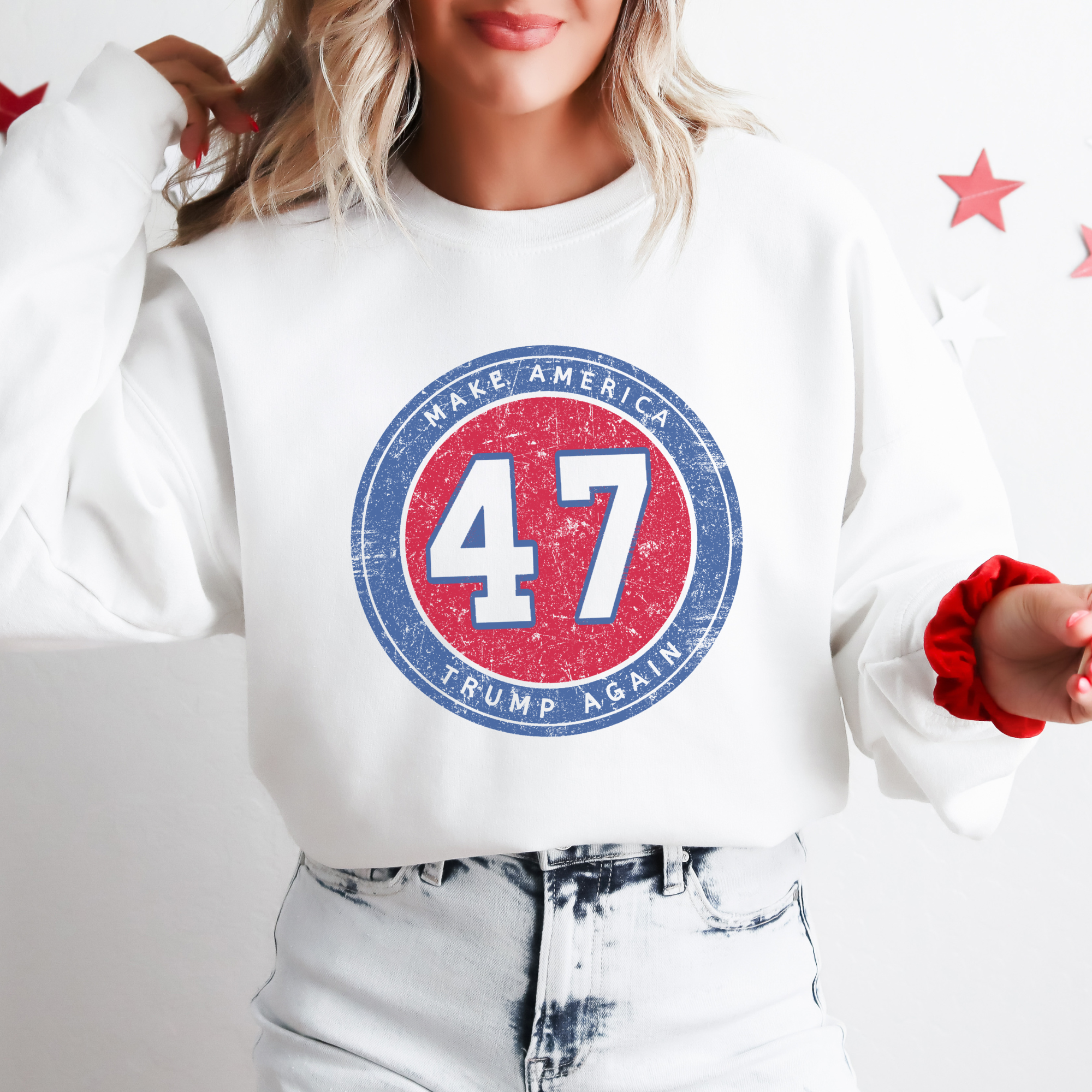 Elevate your patriotic style with our Make America Trump Again sweatshirt! With a bold graphic, it proudly displays your support for our nation and its leader. Stay warm and stylish while showing off your passion. Own the look and make a statement today!