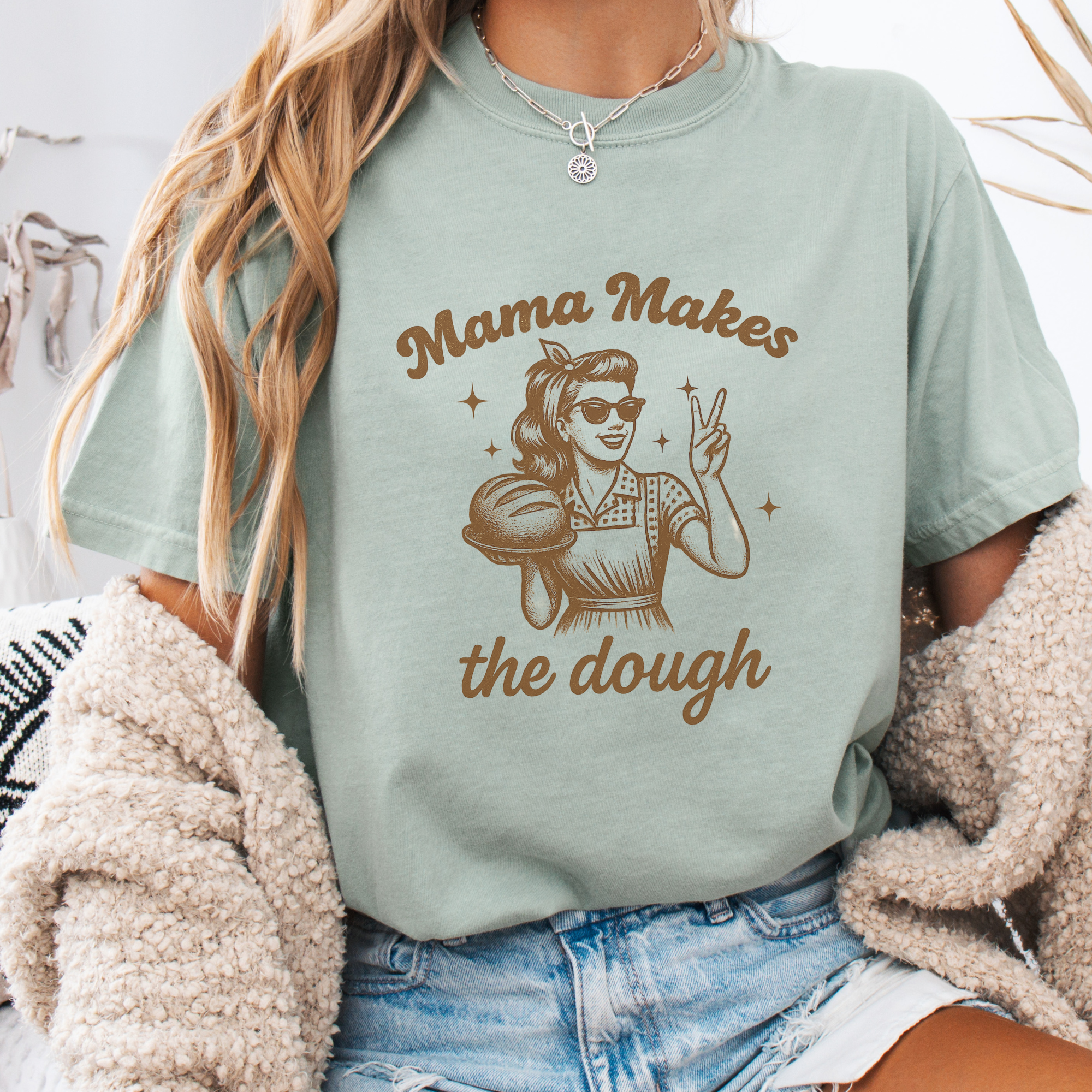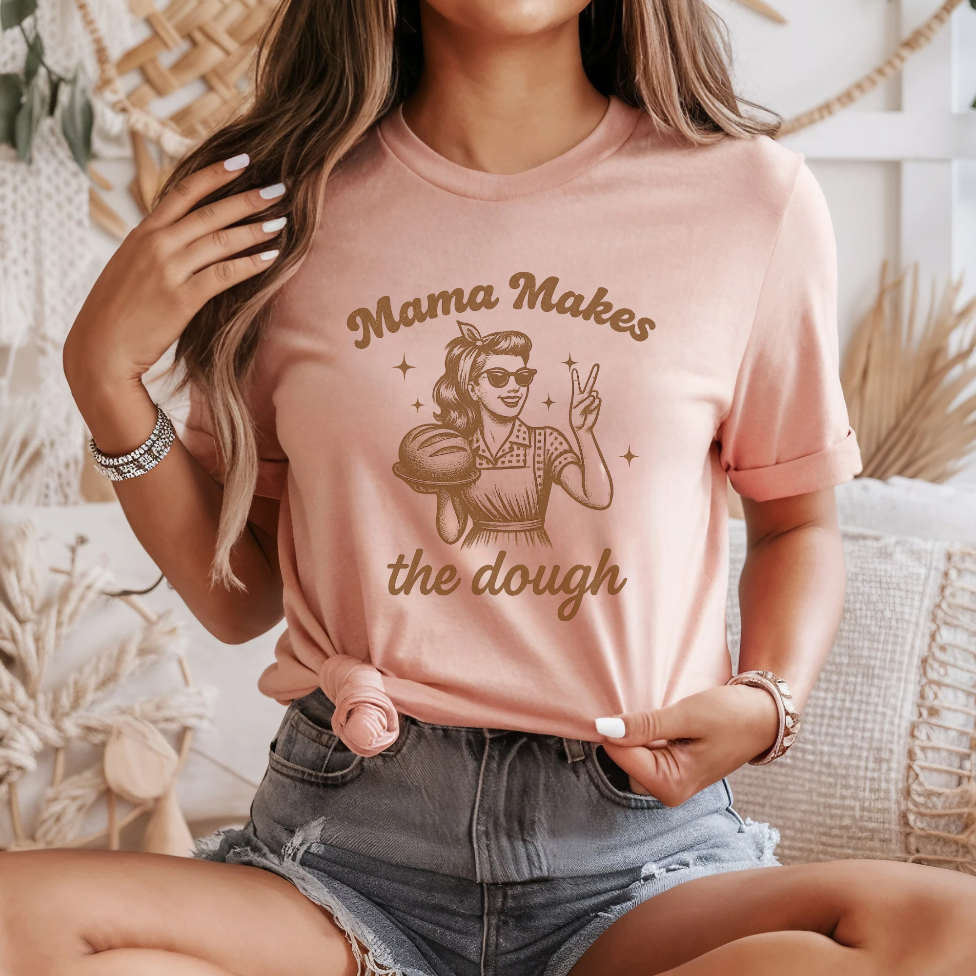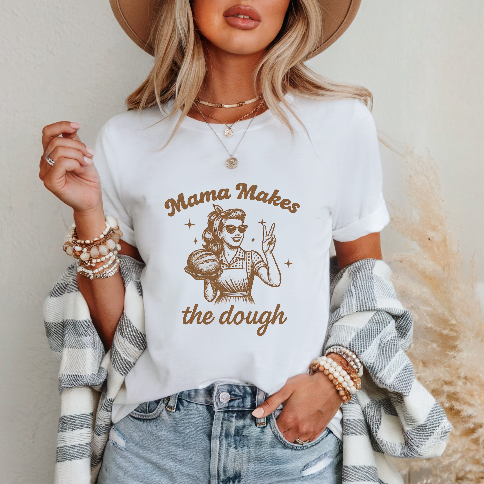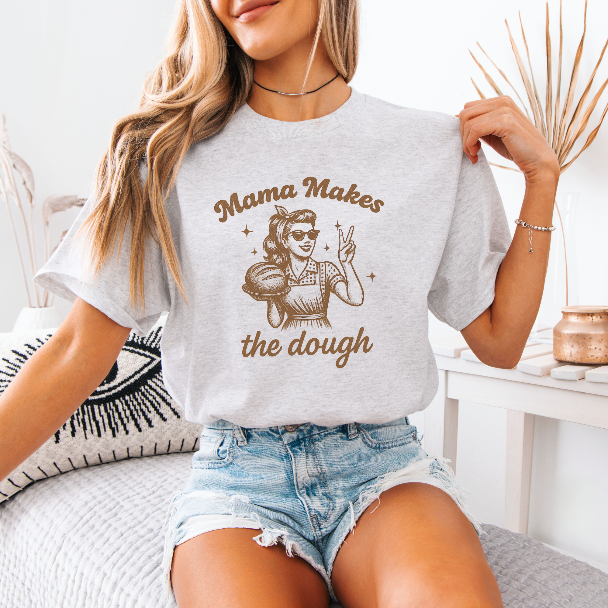 Show off your playful side with the Mama Makes the Dough Funny Women's Graphic T-Shirt. Crafted for comfort and style, this tee combines a witty message with a flattering fit, making it perfect for casual outings or relaxed days at home. Embrace humor and confidence effortlessly while staying comfortable all day long.