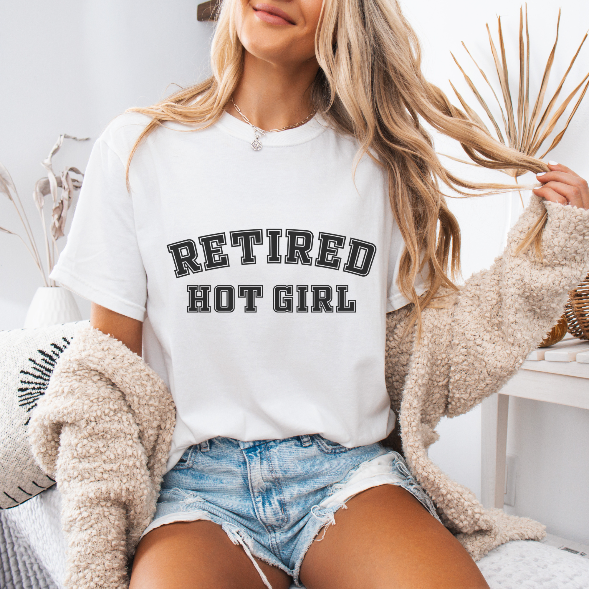 Celebrate your confidence and humor with the Retired Hot Girl Funny Women's Graphic T-Shirt. Designed for women who embrace their unique charm, this shirt combines comfort with a playful statement. Perfect for casual outings or relaxed days at home, it’s a fun way to showcase your personality and spark smiles wherever you go. Upgrade your wardrobe with this witty and stylish tee that’s as bold as you are.