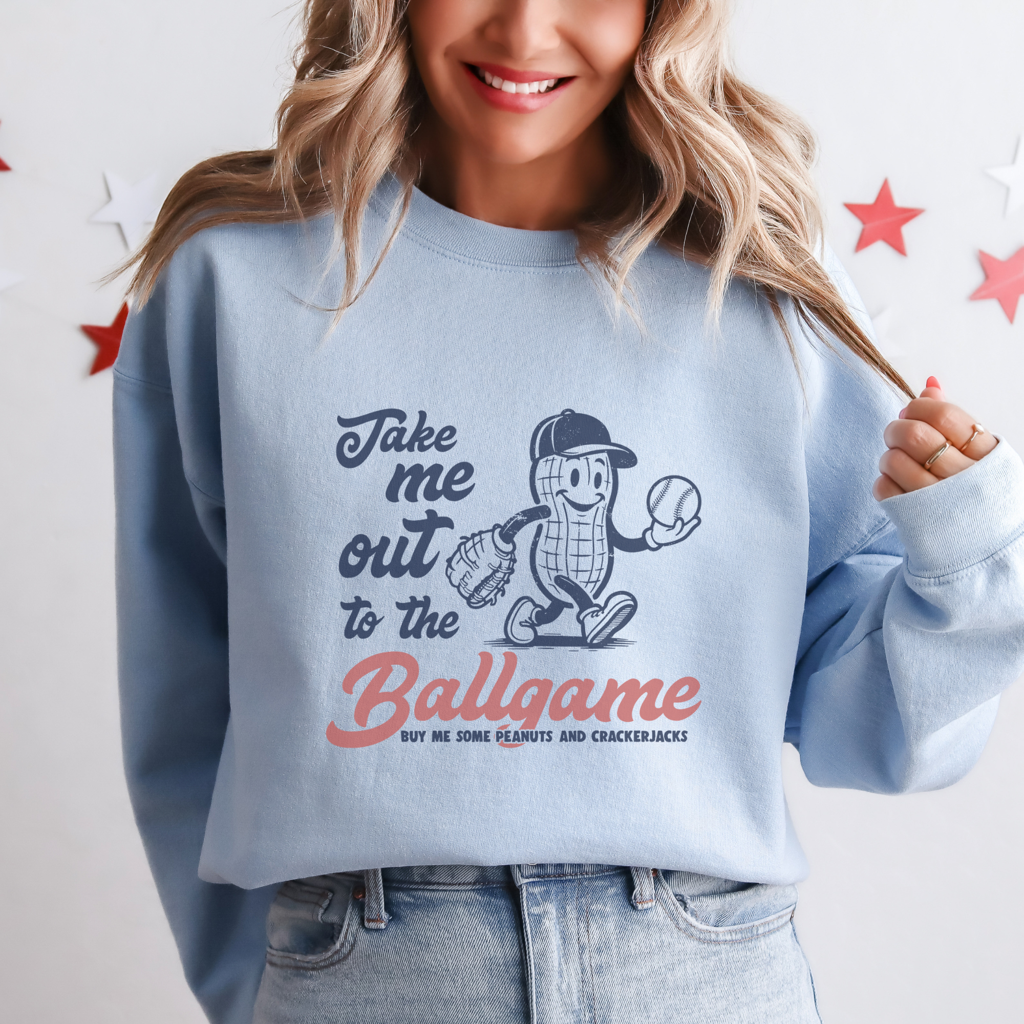 Celebrate your love for baseball with the Retro Take Me Out to the Ballgame Crewneck Sweatshirt. This cozy sweatshirt combines vintage charm with everyday comfort, making it perfect for game days or casual outings. Crafted for warmth and style, it’s an ideal choice to showcase your sporty spirit while staying snug. Elevate your wardrobe with this timeless piece that brings classic baseball vibes to your everyday look.