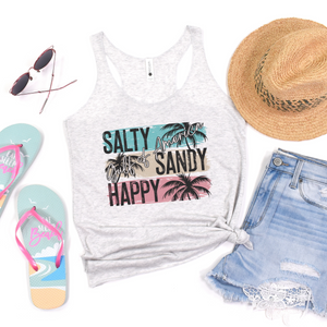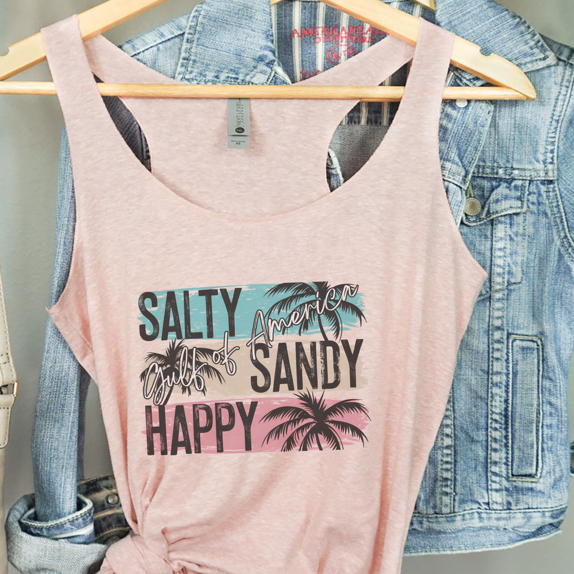 Embrace the carefree spirit of summer with the Salty Sandy Happy Summer Racerback Tank Top. Designed for comfort and style, its breathable fabric keeps you cool while the racerback cut offers freedom of movement. Perfect for beach days or casual outings, this tank top adds a cheerful vibe to your warm-weather wardrobe. Stay stylish and comfortable all season long.
