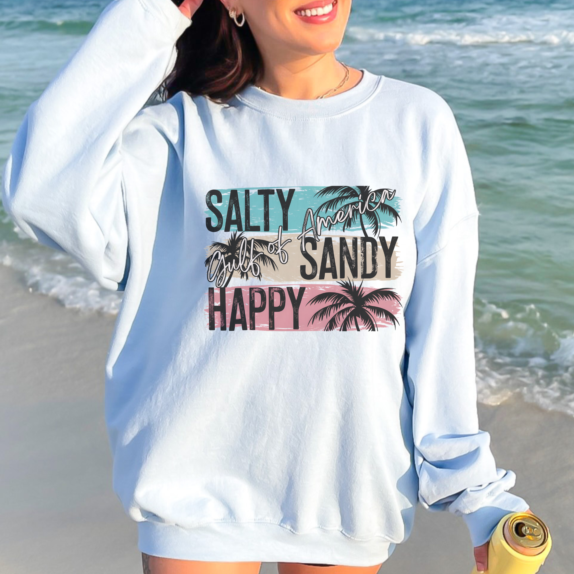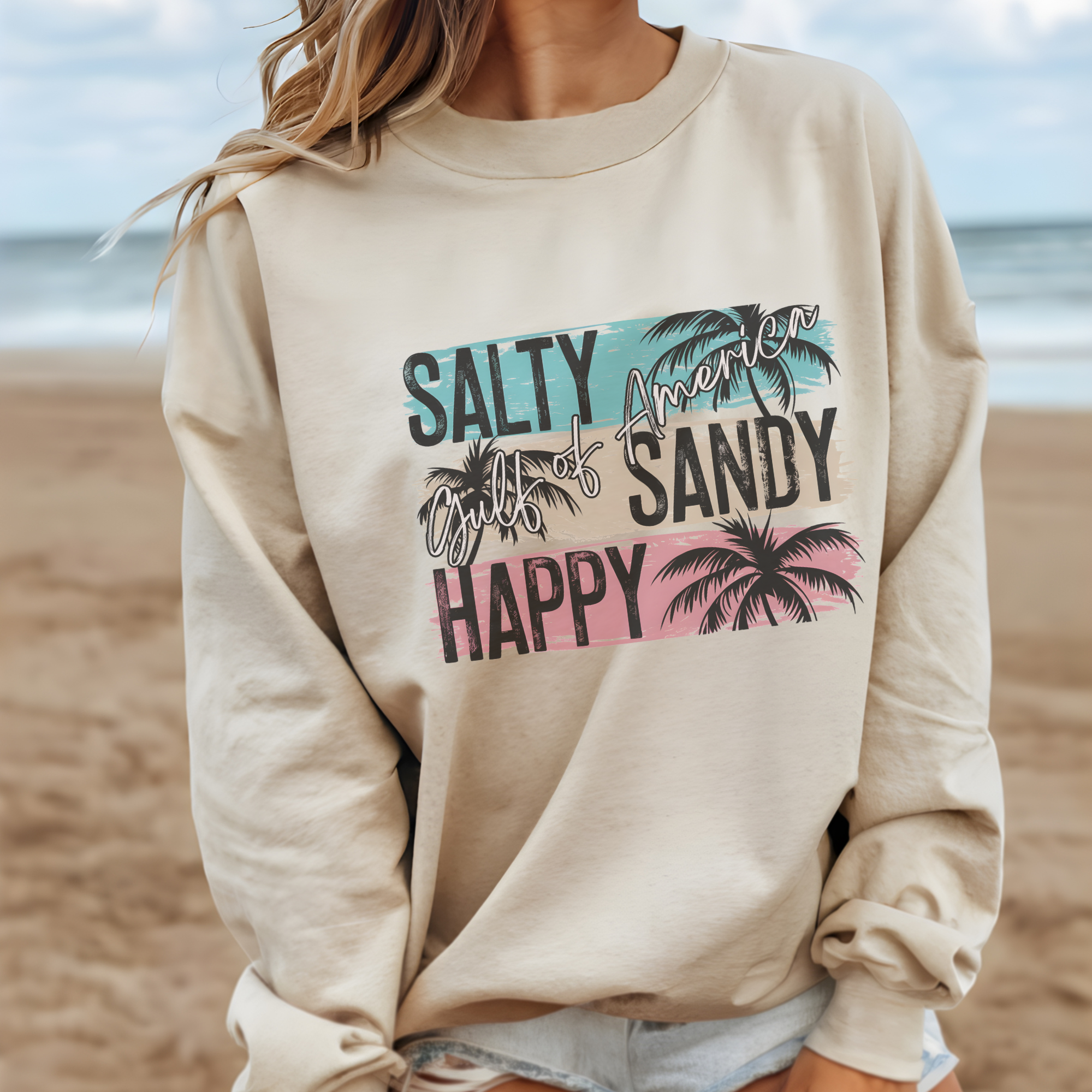 Embrace the carefree spirit of summer with the Salty Sandy Happy Summer Women's Graphic Sweatshirt. Designed for comfort and style, this cozy sweatshirt features a vibrant graphic that captures sunny beach vibes. Perfect for cool evenings or casual outings, it keeps you warm while showcasing your love for summer’s salty breeze and sandy shores. Elevate your wardrobe with this must-have piece that blends relaxed comfort with cheerful, seasonal flair.