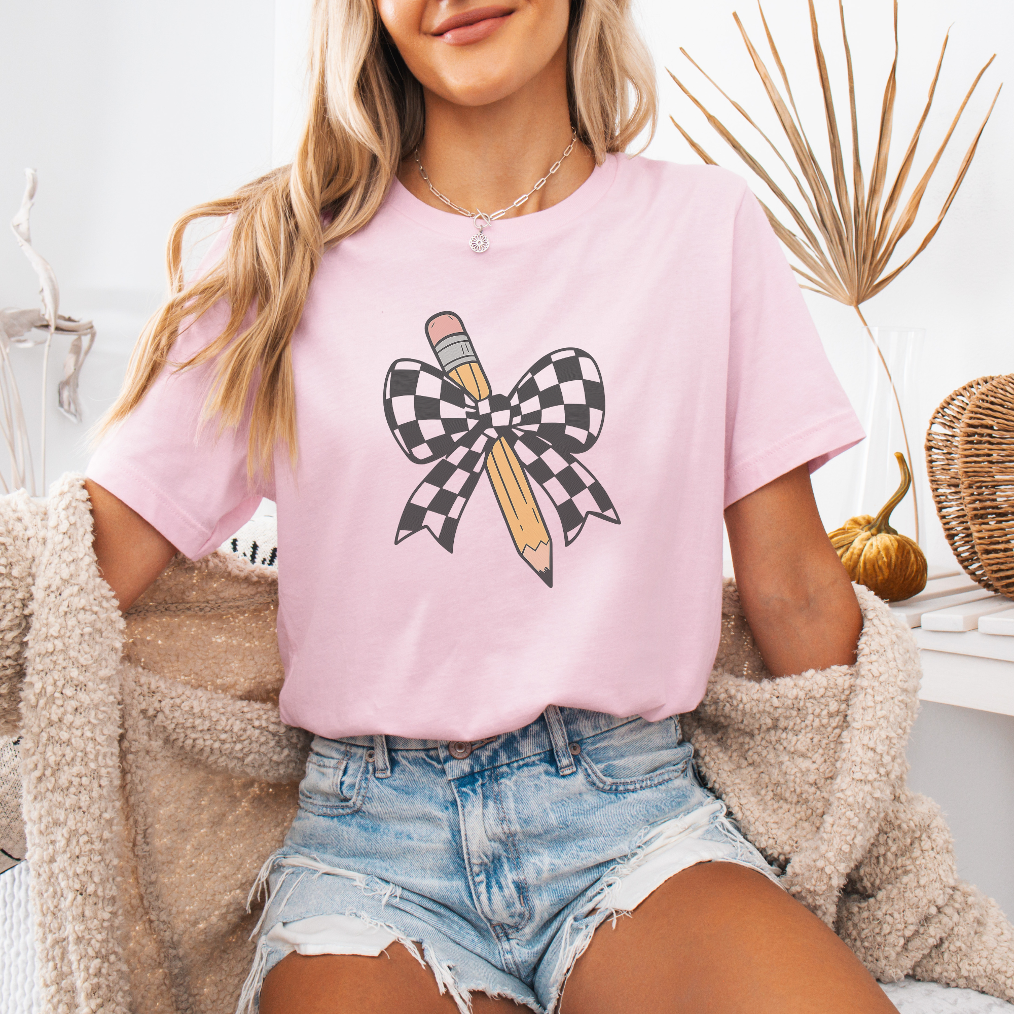 Show your playful side with the Teacher Coquette Pencil Graphic T-Shirt. Designed for educators who love a touch of charm, this tee combines comfort with a witty pencil graphic that sparks conversation. Perfect for casual school days or relaxed weekends, it’s a stylish way to celebrate your passion for teaching while staying effortlessly cool.