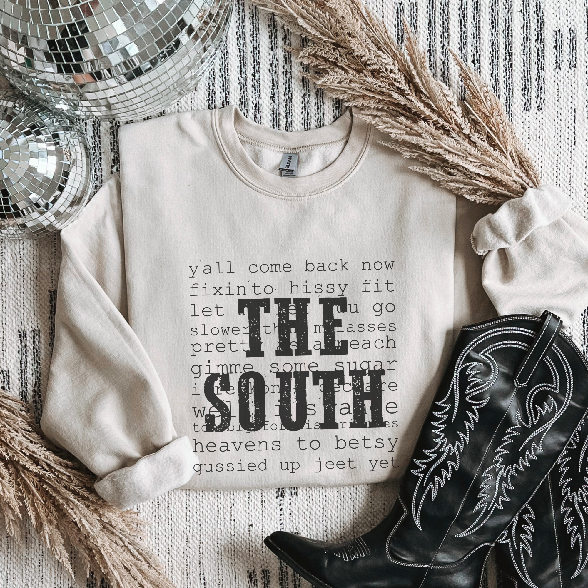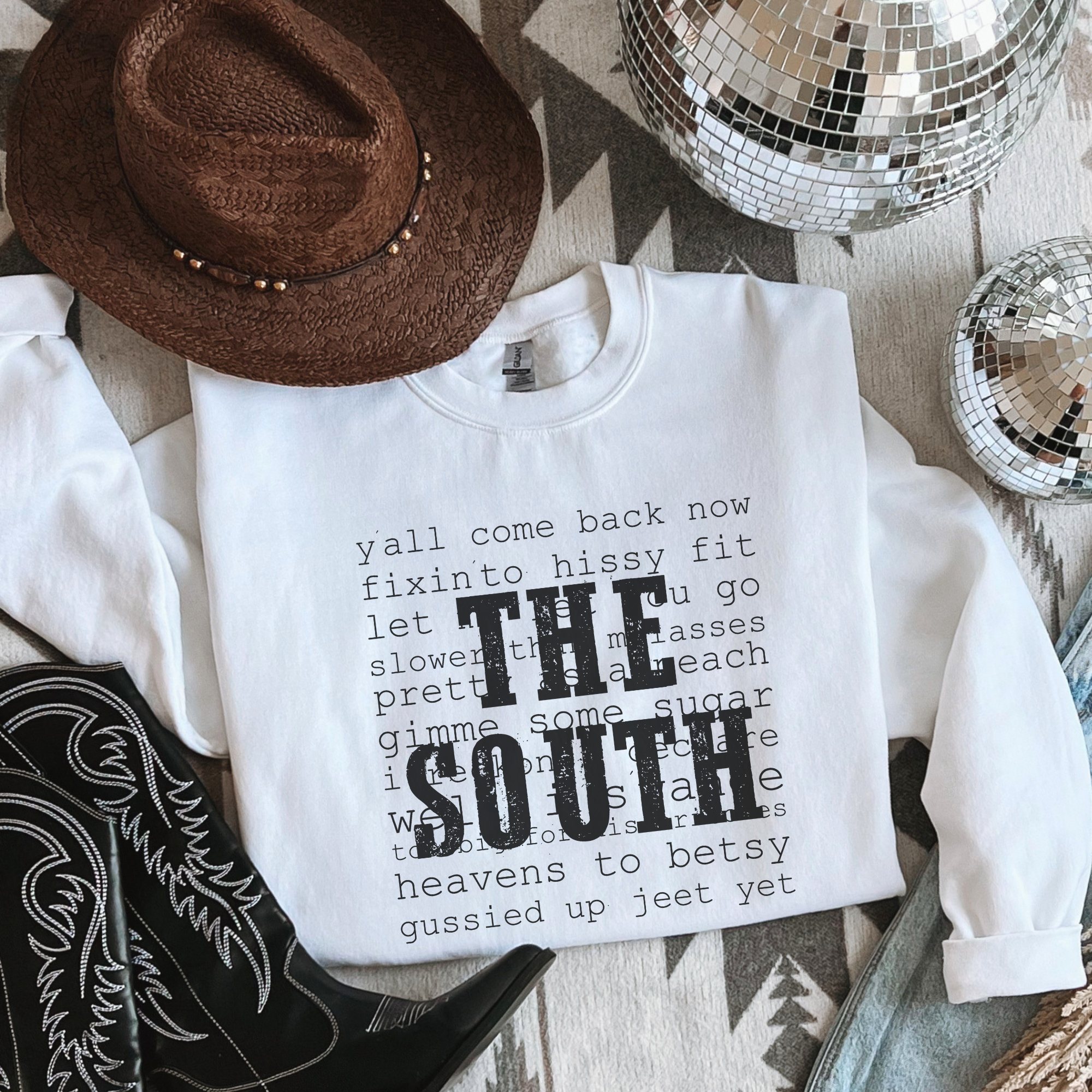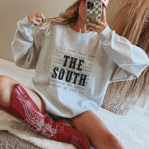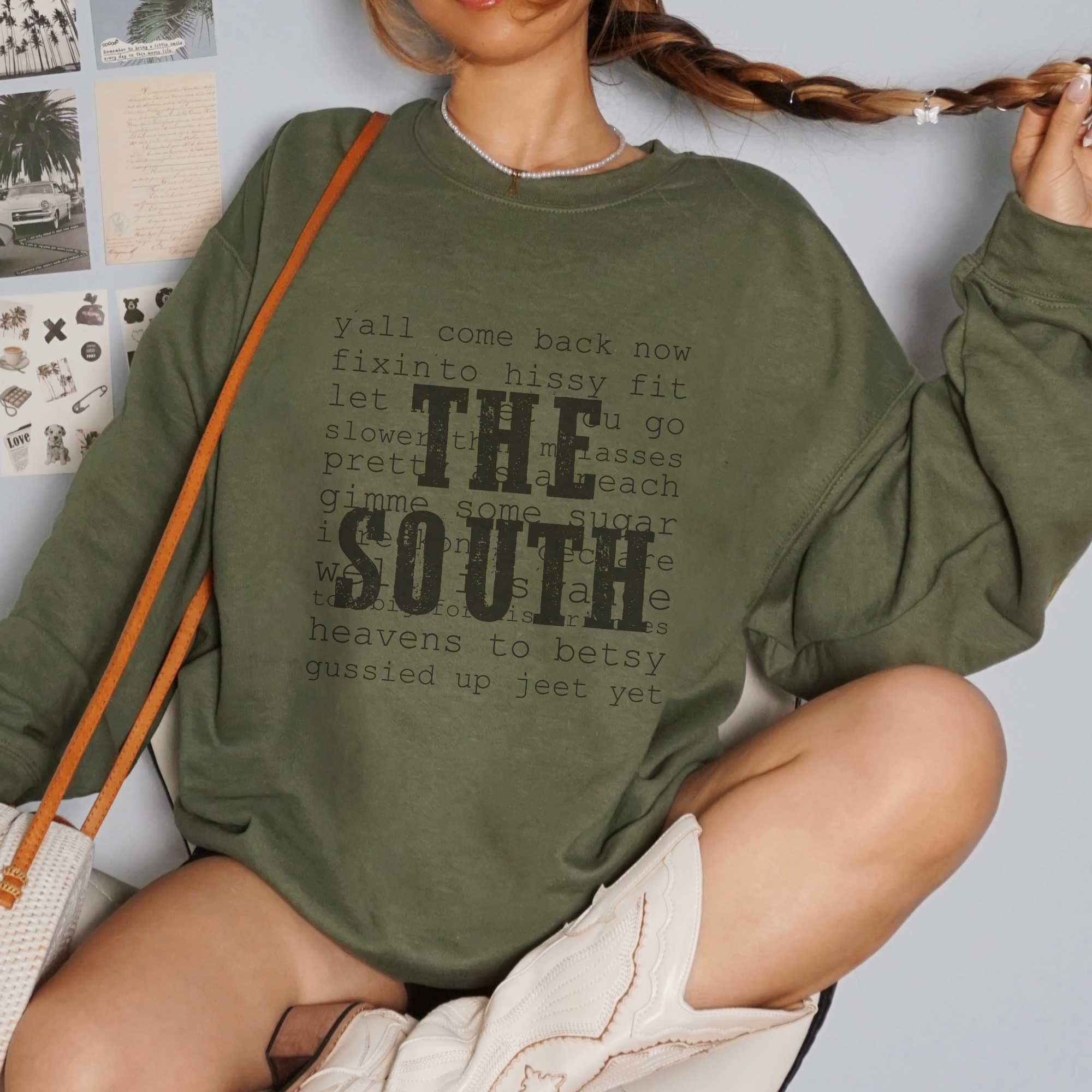 Embrace comfort and style with The South Definition Graphic Sweatshirt. Crafted for a cozy fit, this sweatshirt features a bold graphic that celebrates Southern pride. Perfect for casual outings or relaxing at home, it combines soft fabric with eye-catching design to keep you warm and confident all day long. Elevate your wardrobe with a piece that speaks to your roots and your sense of fashion.