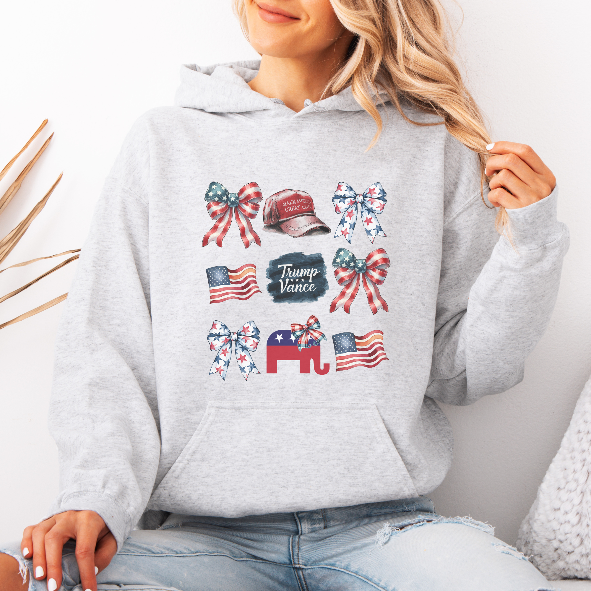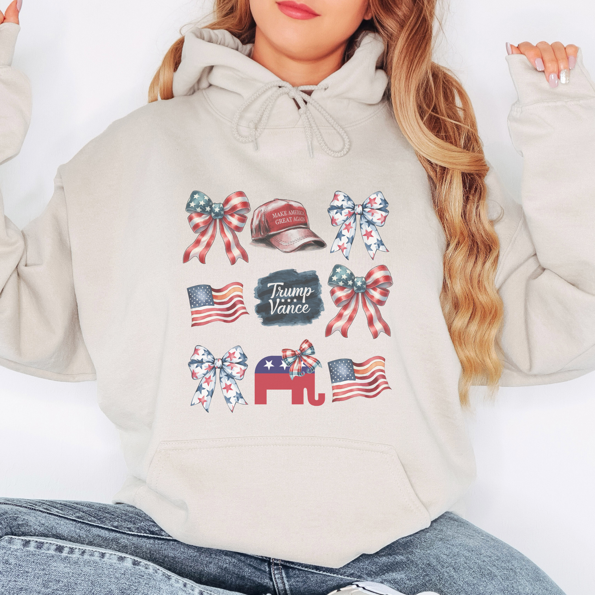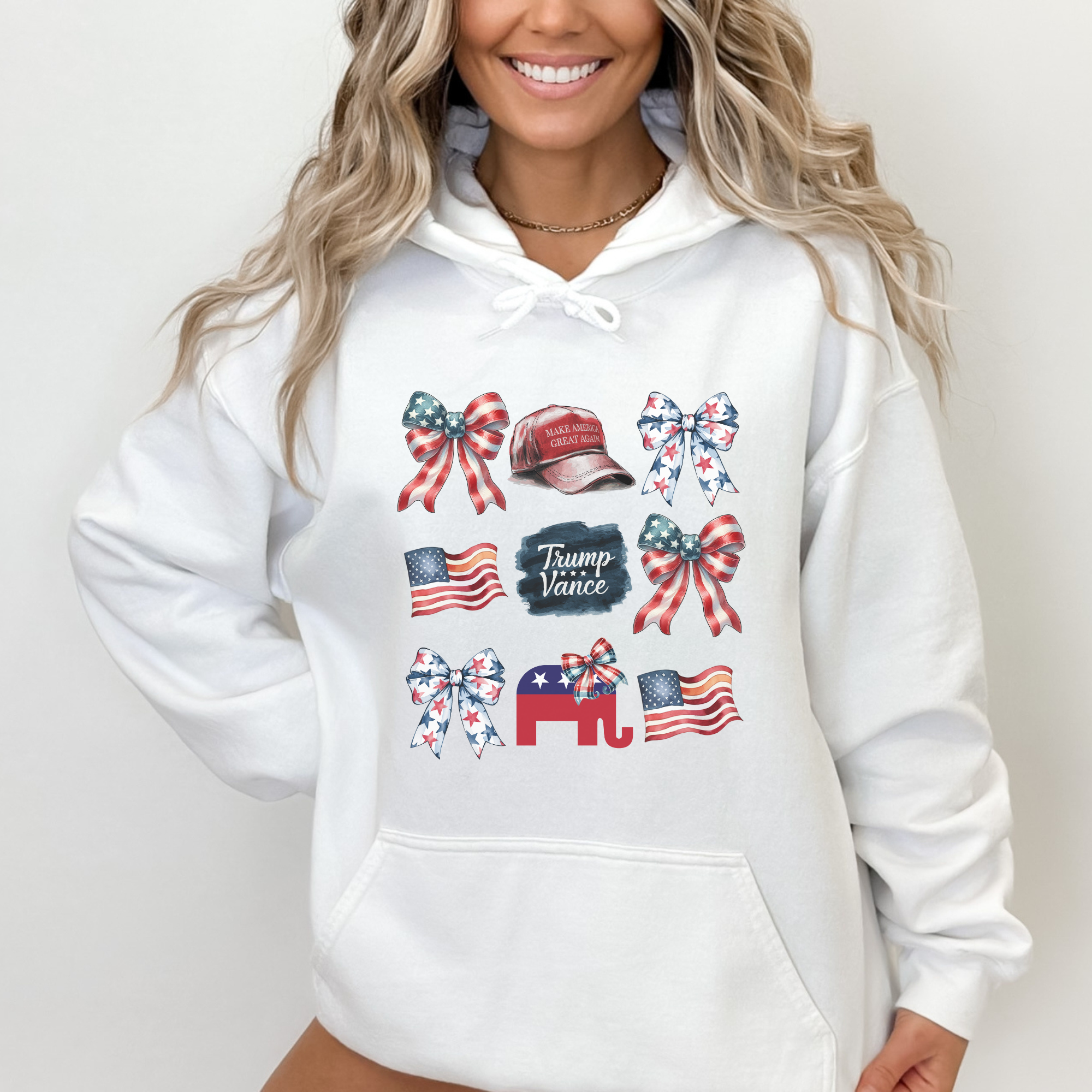 Trump Vance Coquette Bow USA Patriotic Hoodie – Trendznmore