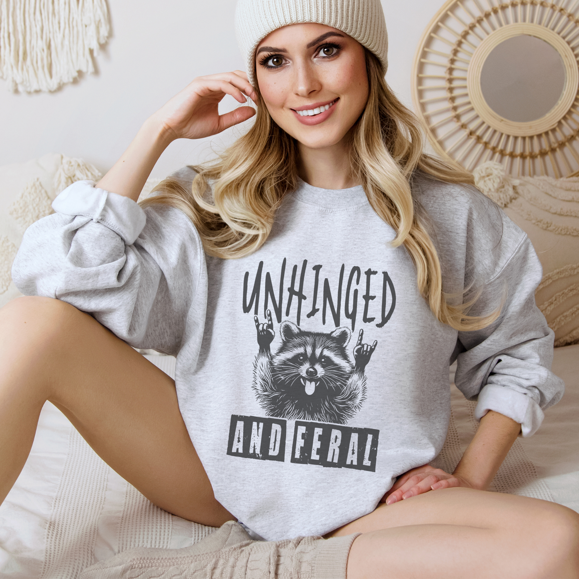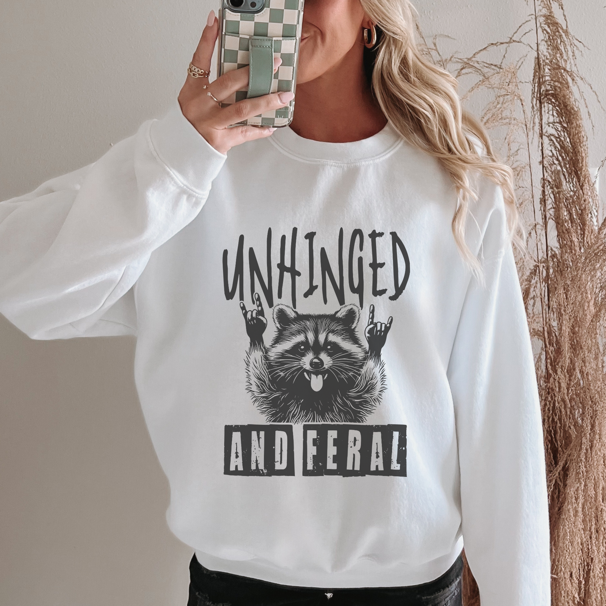 Embrace your wild side with the Unhinged and Feral Funny Crewneck Graphic Sweatshirt. Crafted for comfort and style, this sweatshirt features a bold, humorous design that makes a statement wherever you go. Perfect for casual outings or cozy days at home, it combines softness with eye-catching flair to keep you both comfortable and confidently unique. Stand out and let your personality roar with this must-have addition to your wardrobe.
