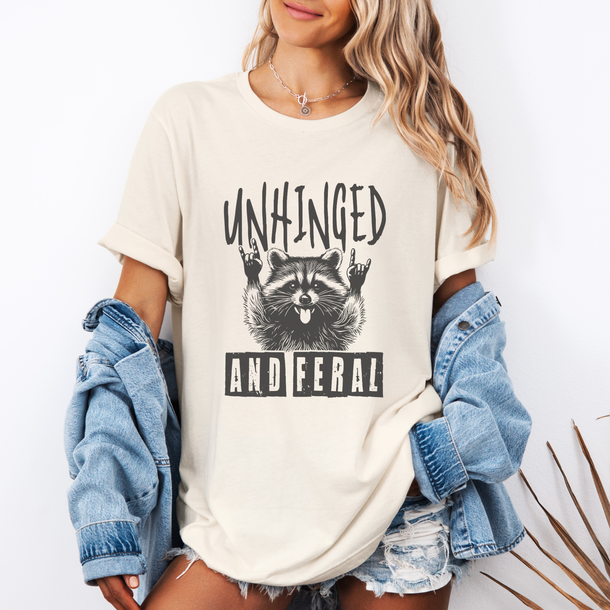 Show off your wild side with the Unhinged and Feral Funny Crewneck Graphic T-Shirt. Crafted for comfort and style, this shirt features a bold, humorous design that sparks conversation and turns heads. Perfect for casual outings or relaxed days at home, it combines soft fabric with a flattering fit to keep you comfortable all day. Embrace your untamed spirit and make a statement wherever you go.