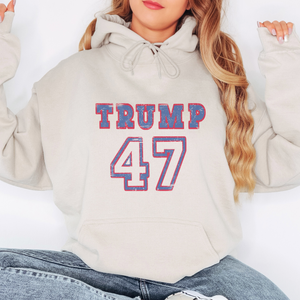 Represent your love for your country and your unwavering support for the current president with our Varsity Trump 47 Patriotic Graphic Hoodie. Stay warm and stylish while showcasing your patriotism with this vibrant and eye-catching hoodie. Perfect for rallies, parades, or everyday wear, this hoodie is a must-have for any true American.