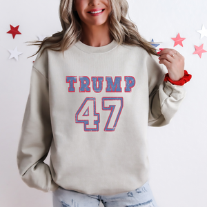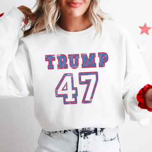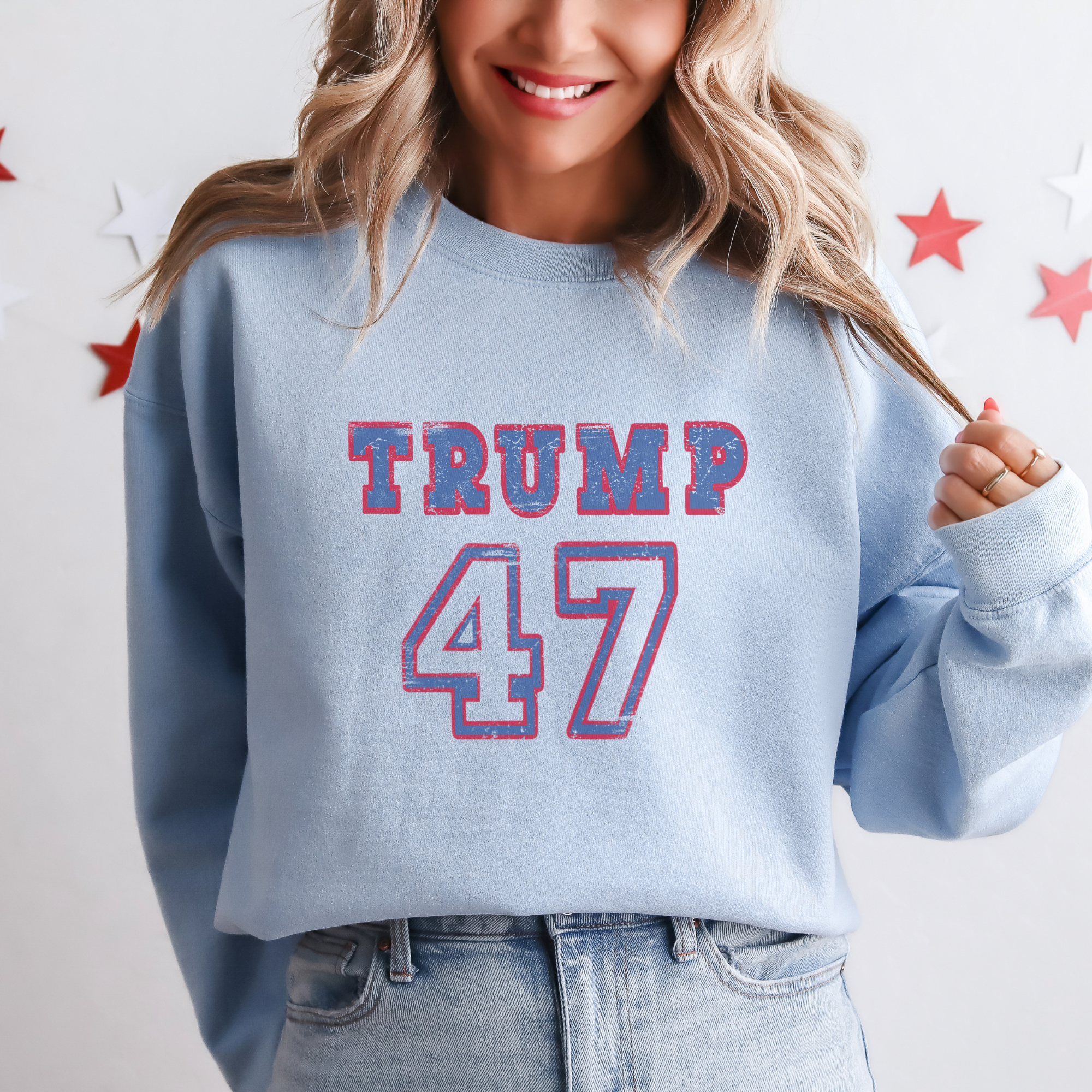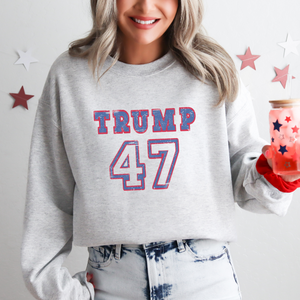 Show off your American pride with our Varsity Trump 47 Patriotic Graphic Sweatshirt! This stylish sweatshirt features a bold patriotic graphic, perfect for any Trump supporter. Stay warm and on-trend while displaying your support. Order now!