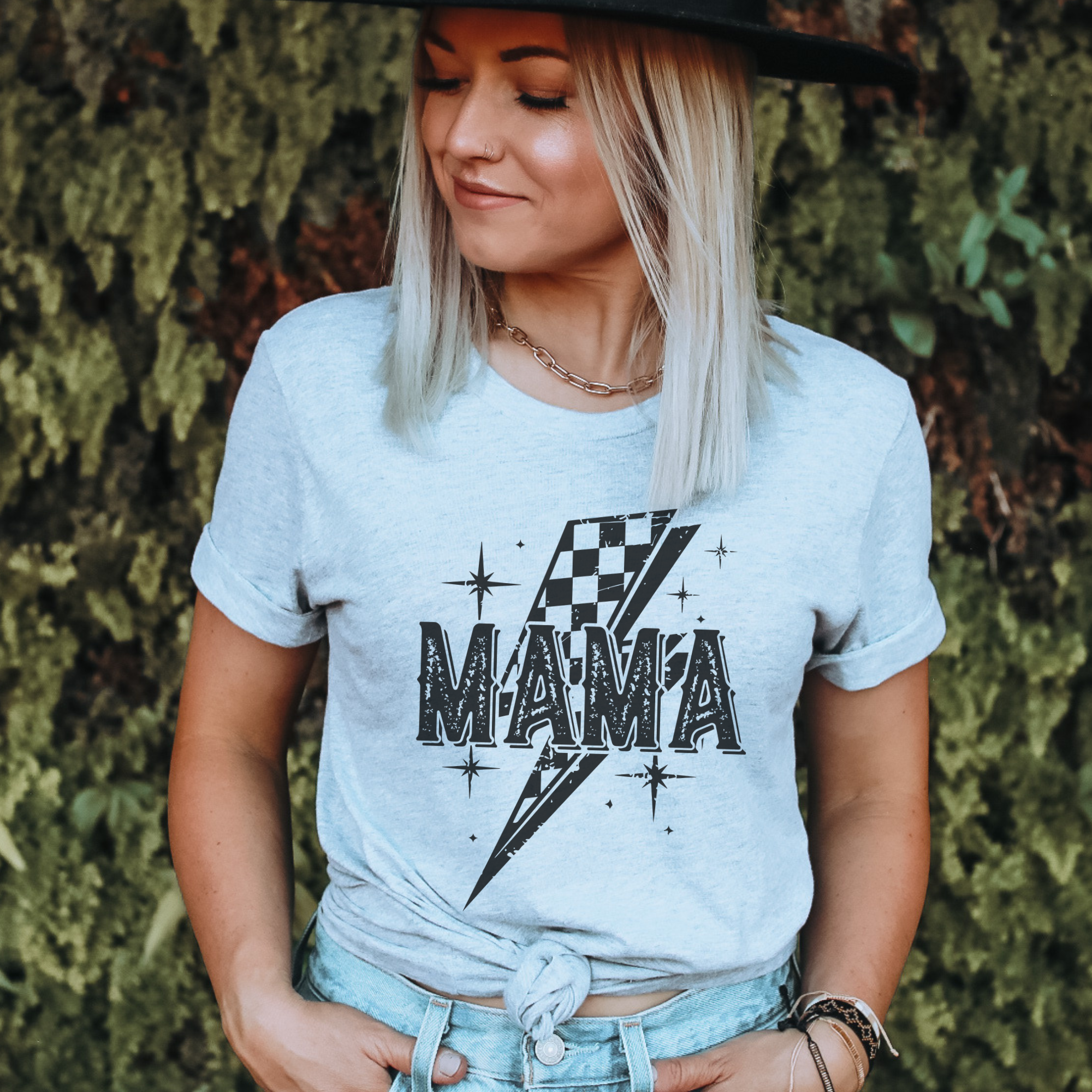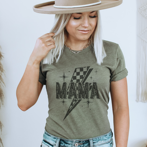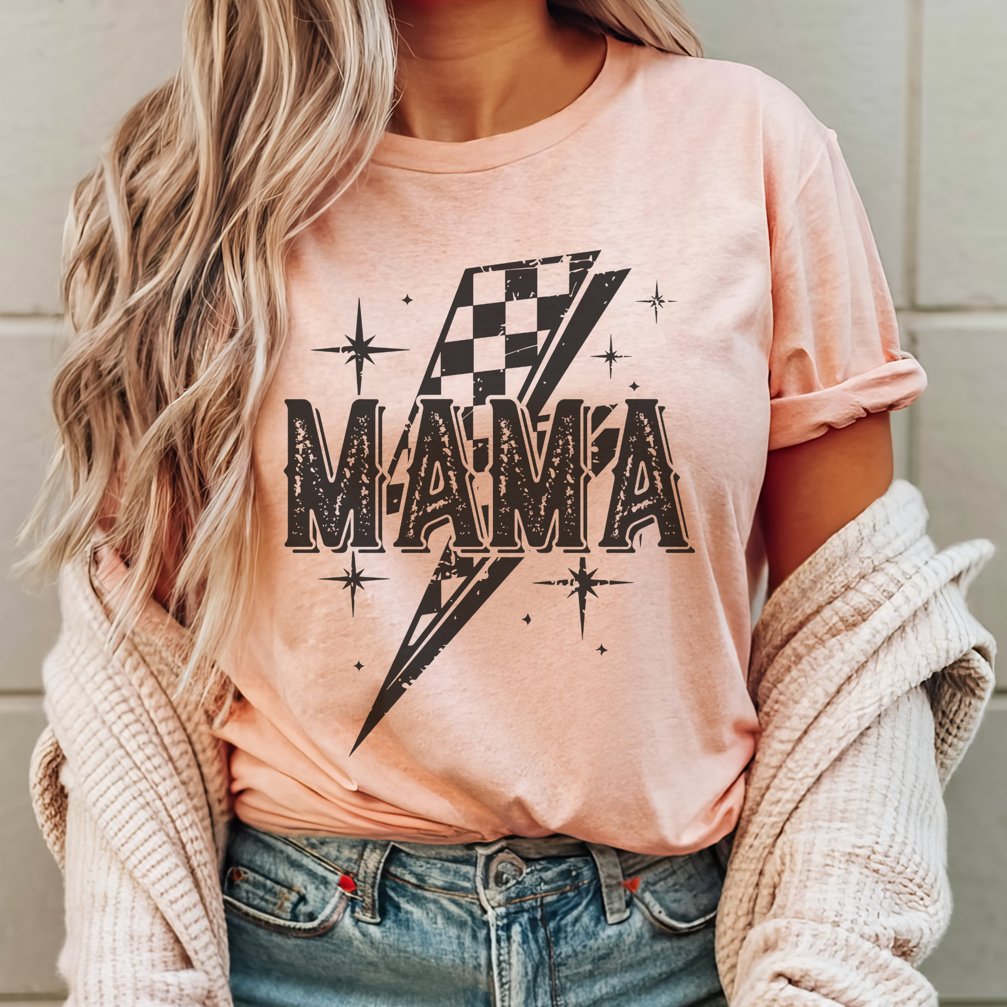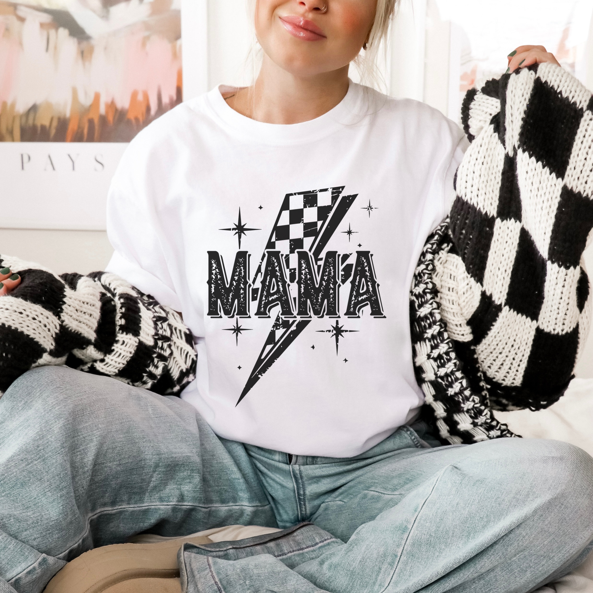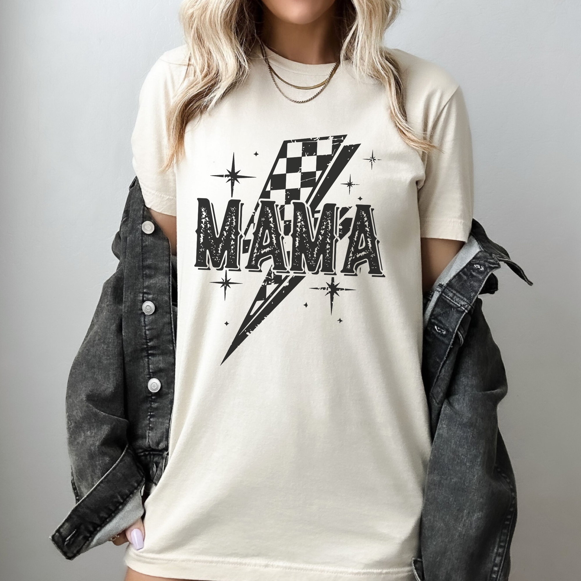 Embrace the retro vibes with our Retro Mama Lightning Bolt Women's Graphic T-Shirt! Made from soft, comfortable fabric, this shirt features a bold lightning bolt graphic that will make a statement wherever you go. Show off your unique style and let your inner mama power shine through!